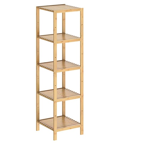 ชั้นวางของไม้ไผ่ธรรมชาติ5ชั้นวางจัดเก็บพื้นที่จัดเก็บได้มากดีไซน์เหนือกาลเวลา